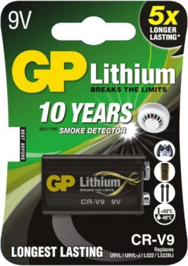 GP Lithium 9V-batterier er det ideelle valg til enheder, der kræver stabil og langvarig ydeevne. Typisk gælder det hjemmeudstyr som røgalarmer, der med disse batterier forbliver aktive i op til ti år, når de bruges sammen med en backup-strømkilde. Det er dobbelt så lang tid sammenlignet med almindelige alkalinebatterier.