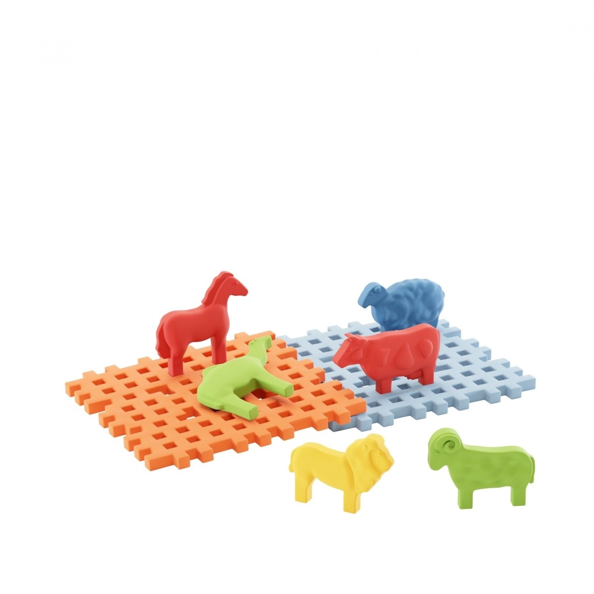 Delene er designet til små hænder – de er fleksible, bløde og behagelige at røre ved, men samtidig tilstrækkeligt holdbare til intens leg. Takket være det unikke forbindelsessystem i Mini Waffle kan børn nemt samle deres yndlingsdyr på sokler og skabe unikke scenarier eller indarbejde dem i større byggerier.