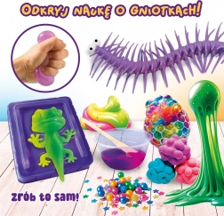 Slumi Science-sættet giver dig mulighed for at afprøve forskellige typer klemmelegetøj. Det er nemt og underholdende at skabe dem.