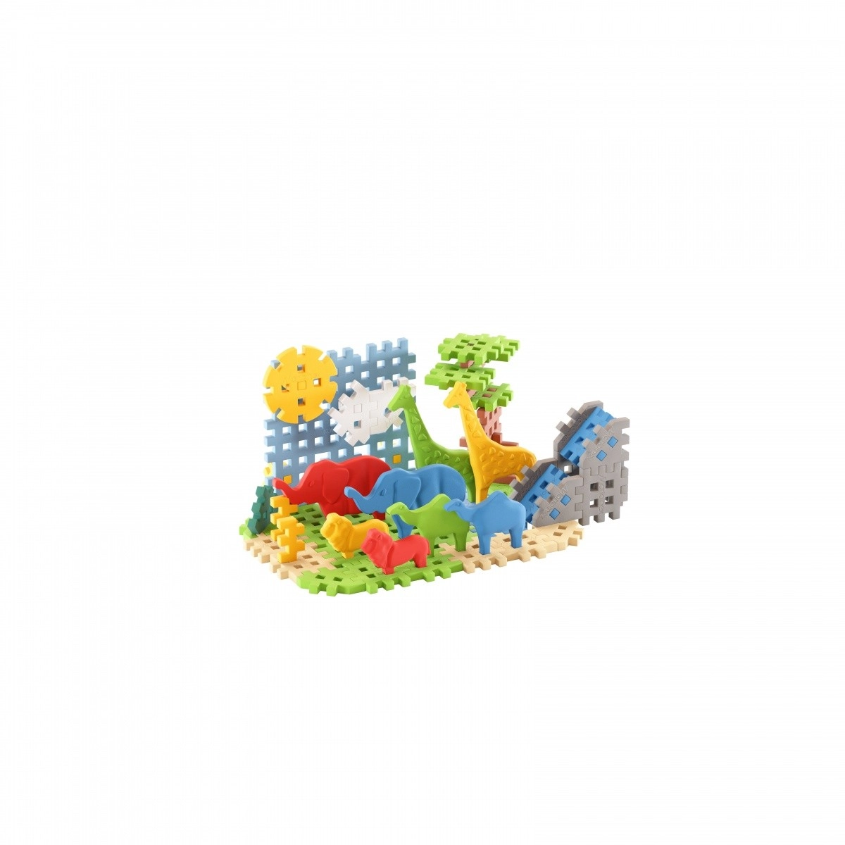 Med byggesættet Mini Waffle - Savannens dyr kan børn skabe deres egen fantastiske verden fuld af afrikansk dyreliv. Det indeholder 50 dele i forskellige former, som gør det muligt at bygge sceniske elementer som et malerisk vandfald og en imponerende savannebaggrund. Der medfølger også en løvefamilie i solen, elefanter ved vandhullet og giraffer i horisonten.