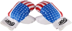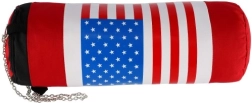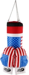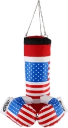 Boksebolden og handskerne er designet med amerikansk flagmotiv, hvilket giver et legende og farverigt udseende.