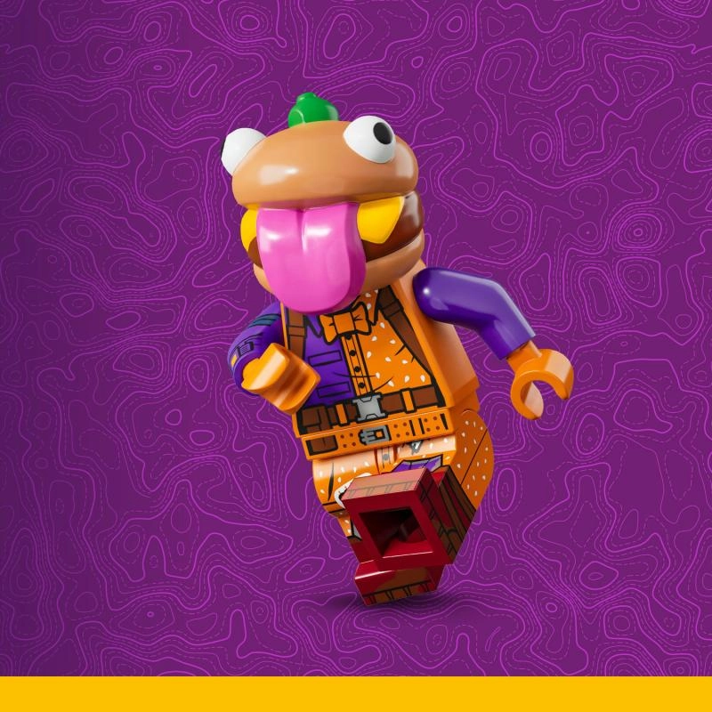 Der medfølger fire minifigurer – Beach Bomber, Beef Boss, Gluciarz og en skeletfigur – som sætter gang i action og understøtter rolleleg. Som bonus får du et eksklusivt Beef Boss-outfit i LEGO Fortnite efter scanning af QR-koden fra forsidens vejledning. Ideel gave til gamere, spirende kokke og LEGO-fans.