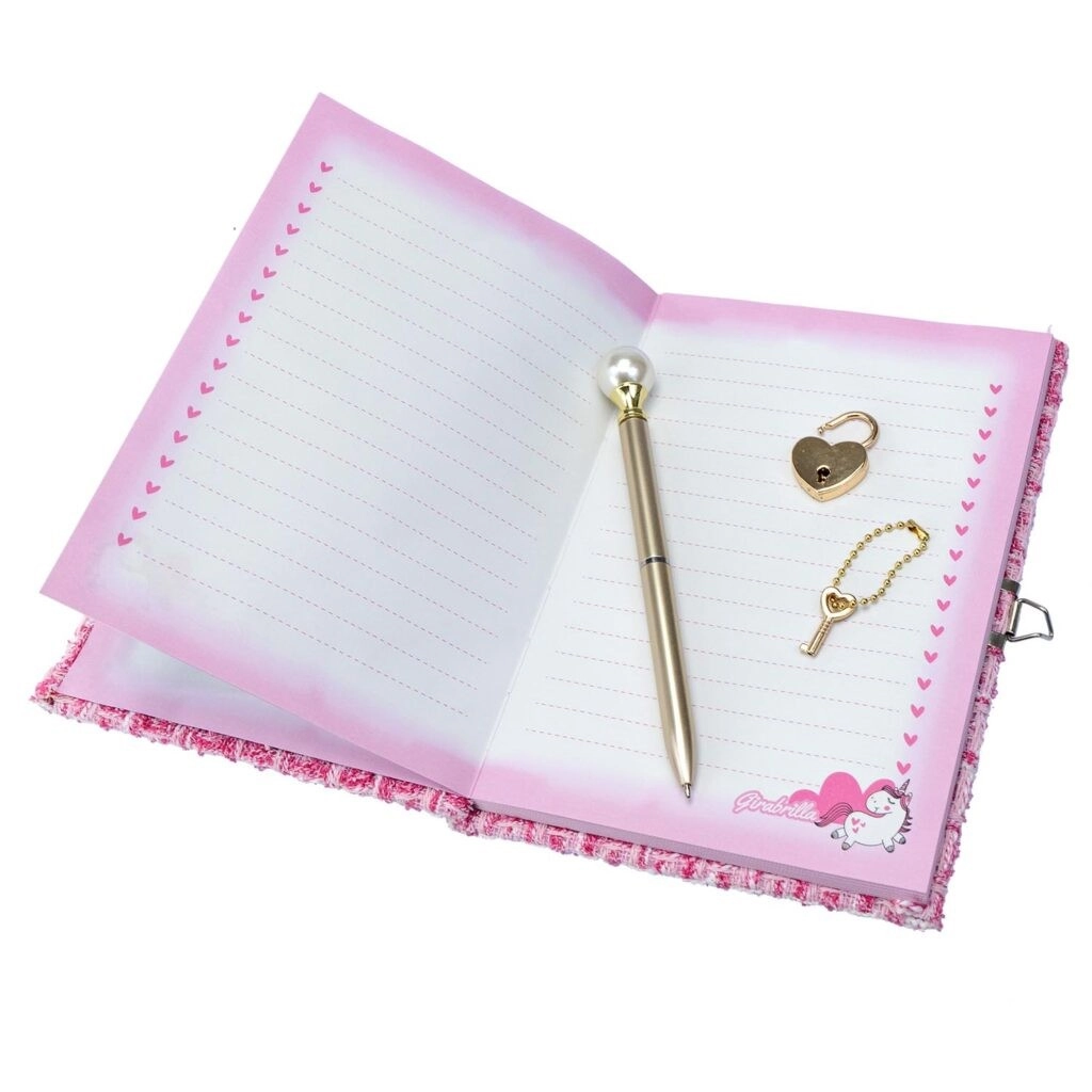 Dagbogen er udstyret med en lås med nøgle, der beskytter dine personlige tanker og hemmeligheder. I pakken medfølger også en praktisk pen, så du straks kan nedfælde dine idéer. Denne dagbog er en skøn gave til alle, der elsker at skrive og ønsker at bevare deres minder med stil.