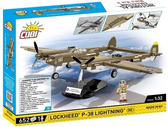 P-38H var en af de hurtigste jagere med en hastighed på 671 km/t og blev værdsat for sin manøvredygtighed og alsidighed. Byggesættet tilbyder:
