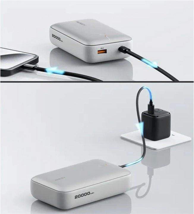 Aukey Spark Mini powerbank er designet til at levere høj ydeevne i et kompakt format. Med en kapacitet på 20000 mAh klarer den flere opladninger af de fleste smartphones og tablets, hvilket gør den ideel til lange rejser.