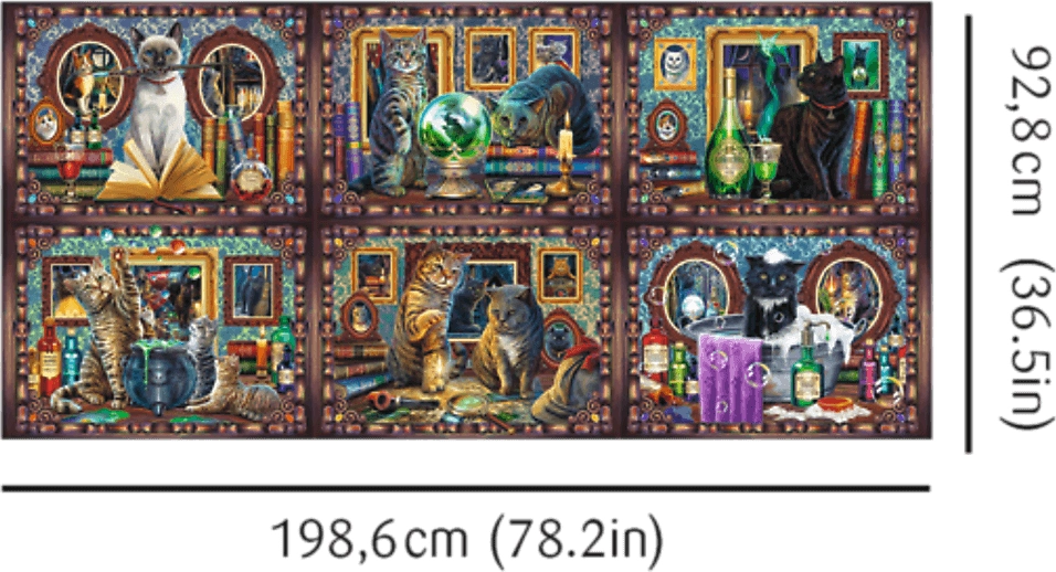 Det færdige puslespil måler 198,6 x 92,8 cm, hvilket gør det muligt at skabe en unik dekoration til dit hjem.