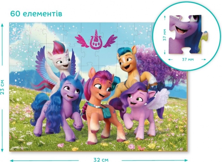 DODO puslespil My Little Pony på den magiske eng, 60 brikker. Ideelt til udvikling af børns færdigheder, størrelse 32 x 23 cm.