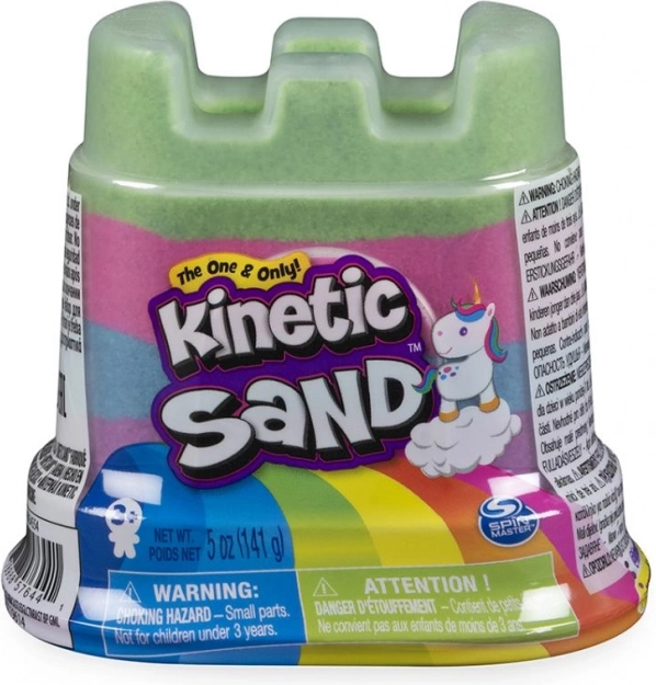 Bland, form og skab med den originale Kinetic Sand mini regnbueslot 140 g. Denne magiske, formbare sand i 4 regnbuefarver rinder behageligt mellem fingrene, tørrer aldrig ud og er ideel til kreativ og sanselig leg. Nemt at forme, blande og opbevare i et bæger formet som et slot; sammensætning uden hvede, gluten og kasein.