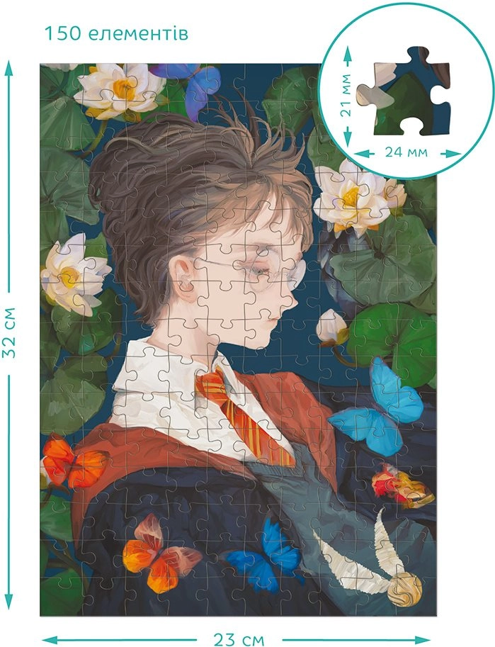 Tag på en rejse ind i trolddommens verden med dette unikke Harry Potter-puslespil. Det fås med forskellige antal brikker (150, 250 og 350), så du kan vælge den sværhedsgrad, der passer bedst til dit humør. Med mål på ca. 32 x 23 cm er det ideelt til at lægge på bordet eller hvor som helst derhjemme.