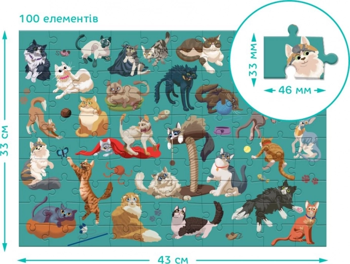 DODO Puslespil Sjove Katte 100 brikker – en sjov måde at slappe af og styrke hjernen på. Ideel til katteelskere!