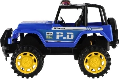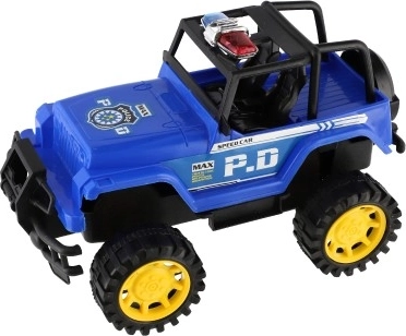 Det robuste offroad-design med høj undervogn og markante hjul giver selvtillid i “terrænet” på børneværelset og i haven. Det politimæssige look med tydelige markeringer understøtter rolleleg og stimulerer fantasien. Med friktionsdrev er det nok at skubbe bilen, så kører den frem uden batterier.