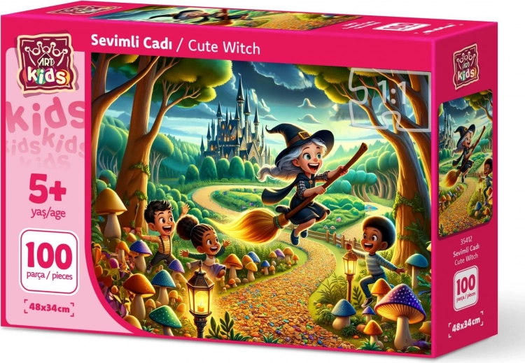 Puslespil Sødt heksepige med 100 brikker, mål 48x34 cm. Ideelt til puslespilsentusiaster.