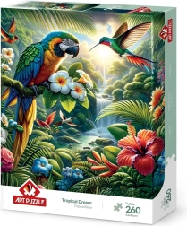 Med Art Puzzle Tropisk drøm dykker du ned i et betagende eksotisk landskab. Dette puslespil med 260 brikker trækker dig ind i en verden af tropiske drømme og giver en sjov og afslappende oplevelse.