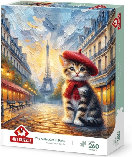 Puslespil for elskere af katte og kunst! Sæt dit eget billede af en kattekunstner i det romantiske Paris sammen med dette puslespil på 260 brikker.