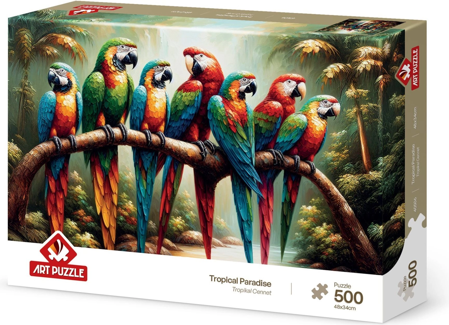 Nyd afslapning, mens du samler puslespillet med motivet af Tropisk Paradis. Dette puslespil består af 500 brikker og er ideelt for enhver eksotisk entusiast.
