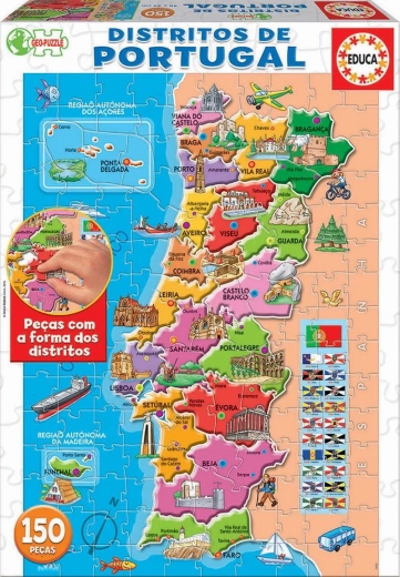 Educa puslespil Kort over Portugal er det ideelle valg for små og store rejseentusiaster. Dette puslespil indeholder 150 brikker og vil genoplive din interesse for Portugals geografi.