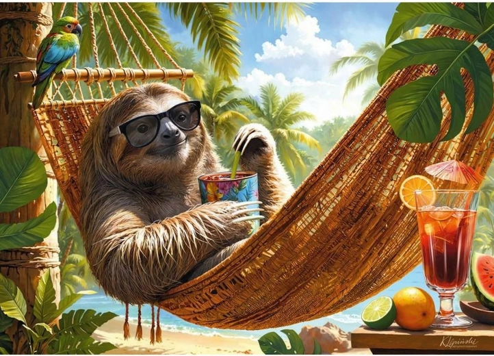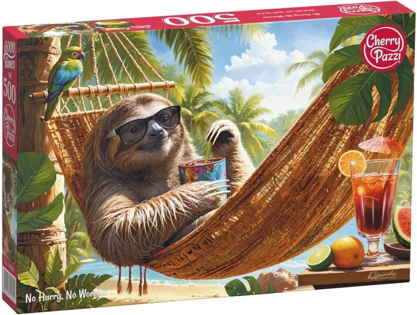 Oplev glæden ved at lægge puslespil med motivet 'Ingen stress, ingen bekymringer'. Sættet indeholder 500 brikker, som tilsammen danner et billede på 50 x 34,5 cm.