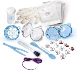 Dette unikke sæt til fremstilling af smykker inspireret af serien Frost er den ideelle gave til alle filmens fans. Det indeholder alt, hvad du behøver for at skabe din egen smukke bijouteri med Frozen-tema.