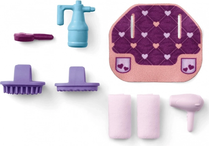 - plejetilbehør: børste, kam, hårtørrer, håndklæder