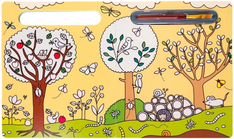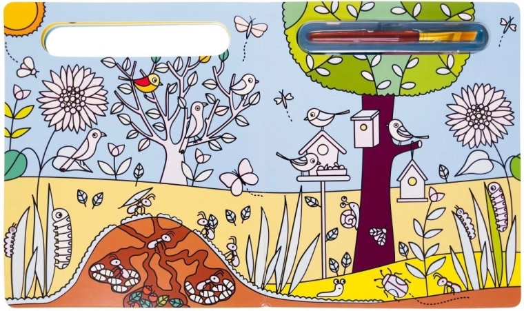 Denne bog med kraftigt, limet hardcover er det ideelle valg for små maleentusiaster. Den indeholder smukke illustrationer af havens dyr, som venter på din kreativitet. Særlig teknologi gør, at farverne forsvinder, når de tørrer, så du kan male igen og igen.