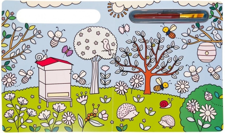 Denne interaktive bog bringer fornøjelsen ved at male med vand til live med eventyrlige billeder af dyr fra haven. Det eneste, du skal gøre, er at dyppe den medfølgende pensel i vand og se farverne magisk dukke op på siderne! Ubegrænsede malemuligheder til at udvikle dit barns finmotorik og hånd-øje-koordination.