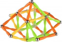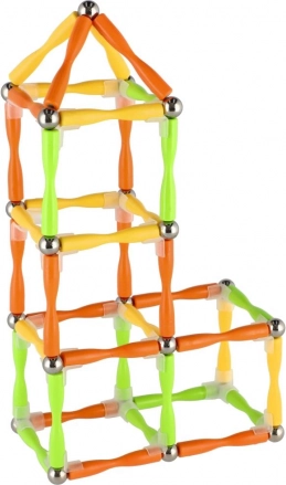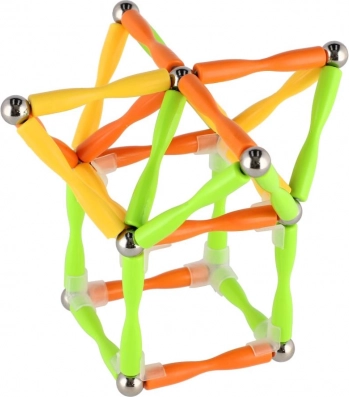 Dette magnetiske byggesæt tilbyder et bredt spektrum af muligheder for kreativ leg. Delene i klare farver hæfter let sammen takket være stærke magneter og metalforbindelseskugler, så børn kan bygge stabile rumlige modeller og simple geometriske former.