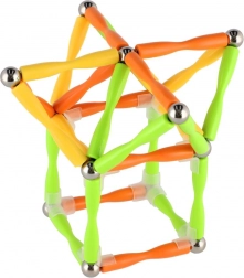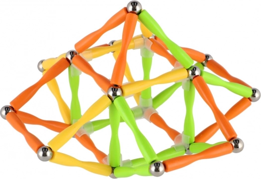 Stærke magneter i plastikstavene og metalkuglerne gør det muligt at skabe solide og høje konstruktioner – fra tårne til broer.