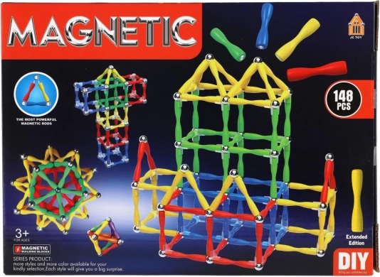 Opdag uendelige muligheder for skabelse med dette farverige magnetiske byggesæt med 148 dele. Kombinationen af plastikstave og metalkugler med magnetiske forbindelser gør det let at bygge 2D- og 3D-konstruktioner – fra simple små huse til avancerede tårne. Ideelt til at udvikle fantasi, logisk tænkning og finmotorik hos børn fra 3 år.