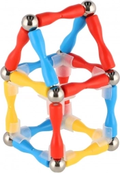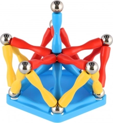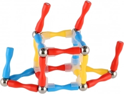 Farvede plaststænger med magnetiske ender og metal-kugler sikrer hurtig og solid forbindelse i mange former. Børn tilegner sig legende principperne for konstruktion og stabilitet.