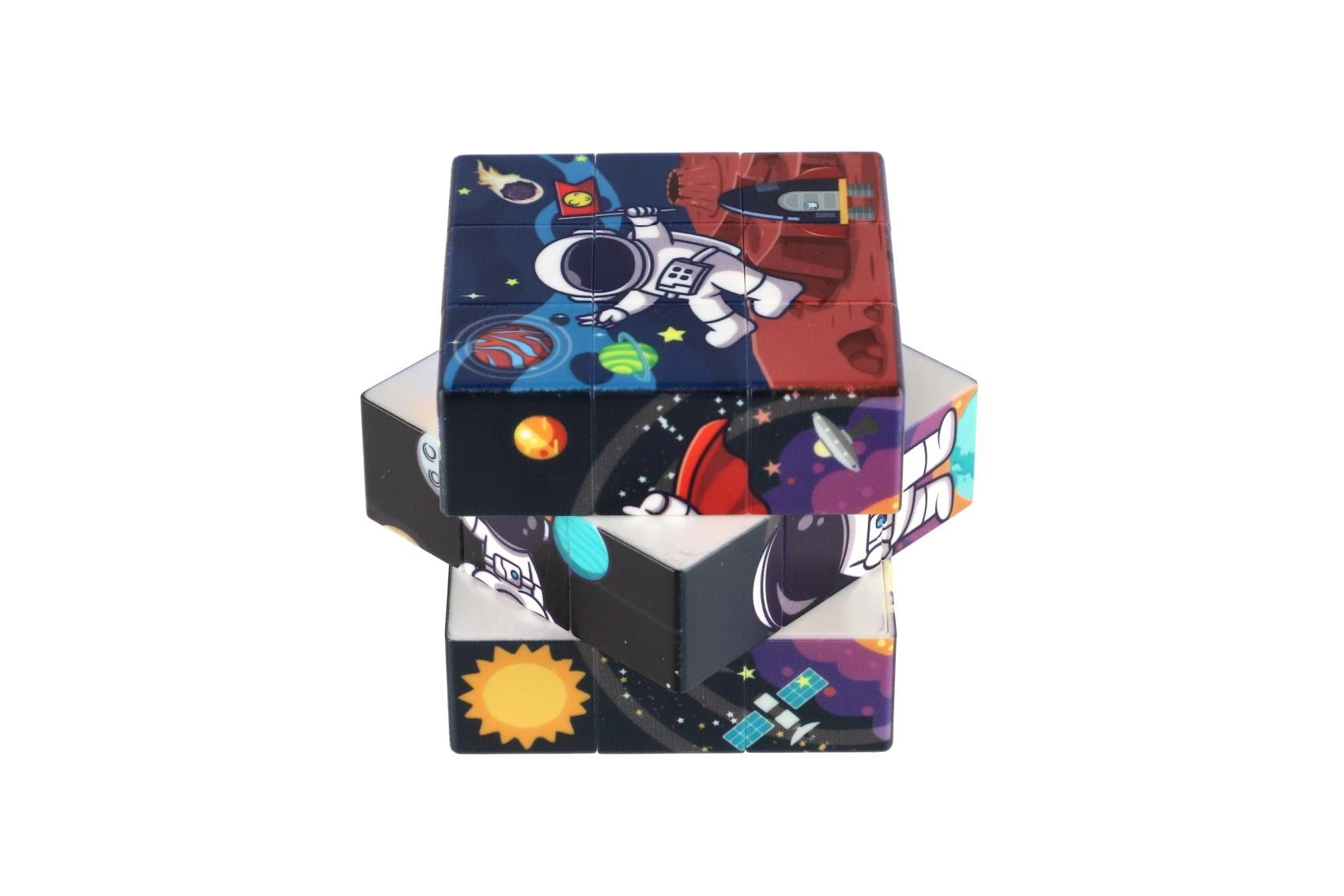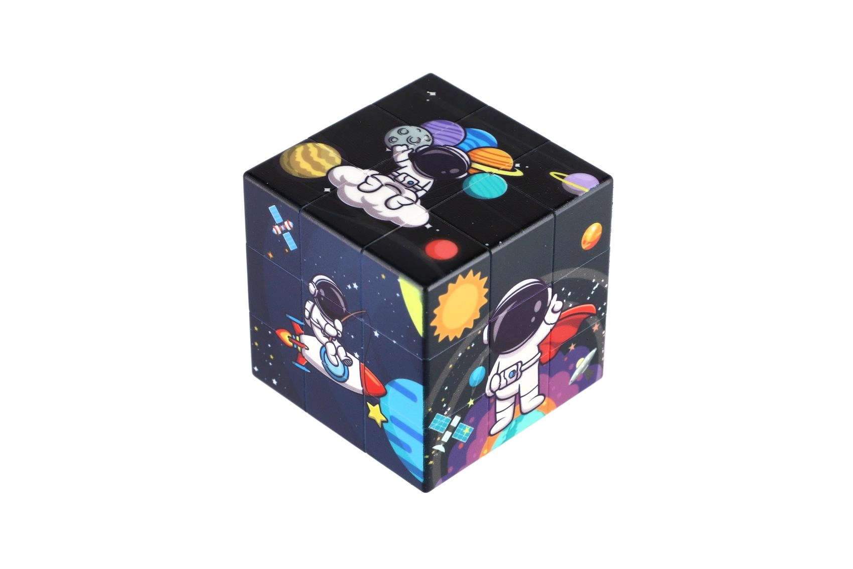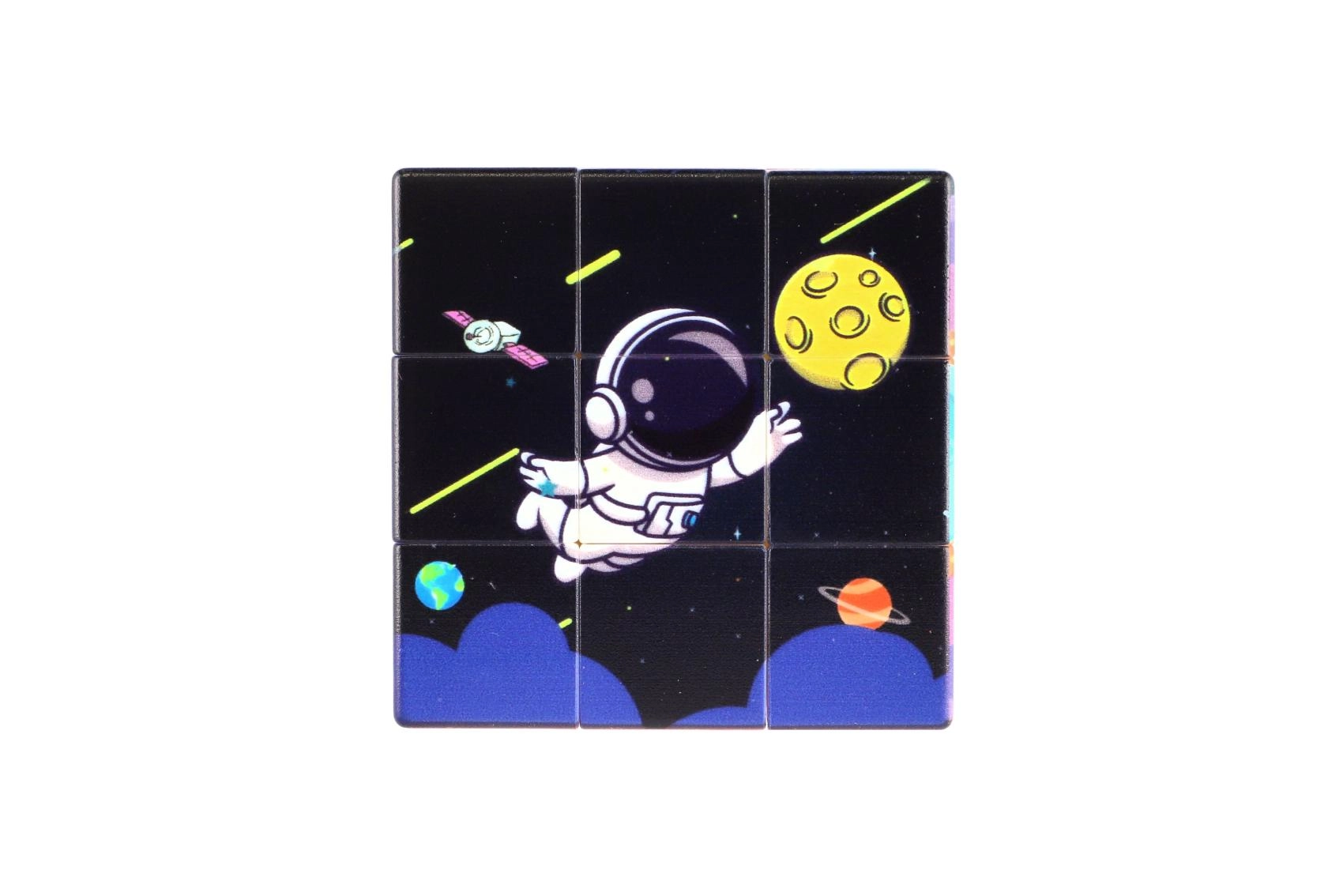 Oplev universets magi med en kube, der på hver side byder på unikke motiver af planeter, stjerner og galakser. Denne kube er et fremragende valg for alle, der vil udvikle logik, tålmodighed og finmotorik.