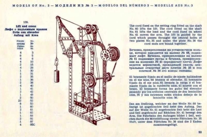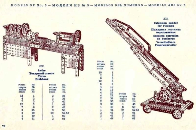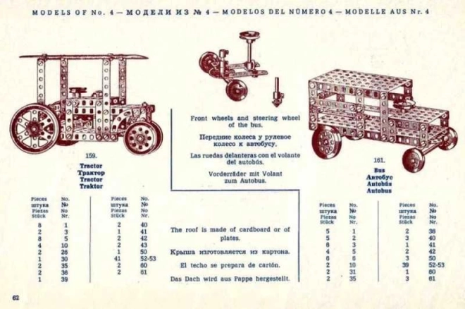 I kassen finder du en stor, 94-siders instruktionsbog i 30’er-stil, udarbejdet til sættene MERKUR Classic C03, C04 og C05. Du kan samle op til 141 forskellige modeller – fra køretøjer og maskiner til tekniske mekanismer. Den perfekte gave til kreative børn fra 8 år, teknikentusiaster og elskere af retrodesign.