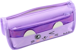 Penalhuset har to praktiske lynlåslukkede lommer – et hovedrum med stor kapacitet, ideelt til blyanter, kuglepenne og andre skriveredskaber, samt en mindre lomme på forsiden, som er perfekt til småting som viskelædere og blyantspidsere. Det søde kattemotiv med et muntert ansigtsudtryk og ører, der stikker op fra overfladen, giver helheden karakter og barnlig charme.