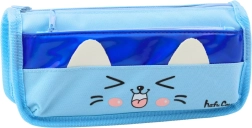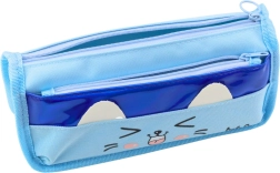 Penalhuset tilbyder to praktiske lommer med lynlås: et hovedrum med stor kapacitet, ideelt til opbevaring af penne, blyanter og andet skriveredskab, samt en mindre frontlomme til småting som viskelæder eller blyantspidsere. Det søde kattemotiv med smil og ører giver hele penalhuset karakter og børnevenlig charme.