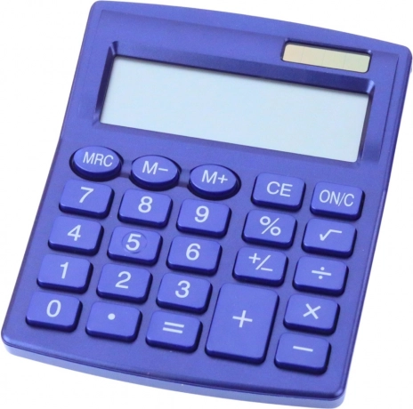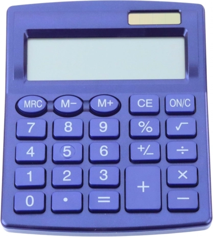 Den elegante blå lommeregner er et perfekt valg til daglig brug. Dens kompakte mål gør den nem at opbevare i en skuffe, rygsæk eller mappe. Takket være kombineret strømforsyning med batteri og solcelle fungerer den pålideligt selv ved svagere belysning.