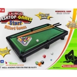 Nyd dit yndlingsspil hvor som helst med et kompakt bordbillard med spilleflade på ca. 48 × 35 cm. Den lette konstruktion, den grønne dug og stabile ben sikrer komfortabelt spil på sofabord, konferencelokale eller skrivebord. Et fremragende valg til børn fra 4 år og voksne, der vil træne præcision og tålmodighed.