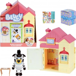 Gør dig klar til et uventet møde med Bluey takket være Overraskelseshuset! Når du åbner døren, venter der en stor overraskelse. Indeni finder du en unik gave med skiltet "tid til leg" og et ark klistermærker. Luk dørene, og brug klistermærkerne til at dekorere huset. Skiltet kan placeres på forsiden. Når du åbner dørene igen, opdager du en eksklusiv Bluey-bamse, klar til leg – bliver det Dronning Bluey eller Bluey i kostume? Hvem venter på dig?