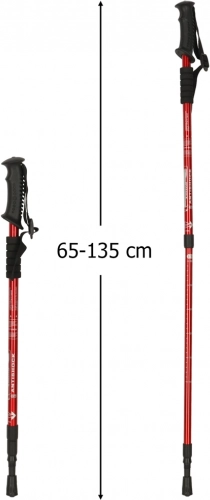 Med et låsemekanisme kan du let justere stængernes længde efter behov i området 65-135 cm, hvilket giver den nødvendige støtte på forskelligt terræn.