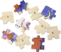 Den farverige scene med enhjørning, feer og slot motiverer børn til at lægge puslespil og til at fortælle deres egne historier.