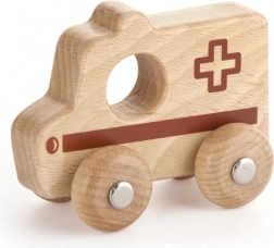Denne træambulance er en kvalitetslegetøj designet til daglig leg. Det holdbare design, de glatte kanter og friløbshjul giver jævn kørsel på forskellige overflader og understøtter naturligt finmotorik, hånd–øje-koordination og fantasi.
