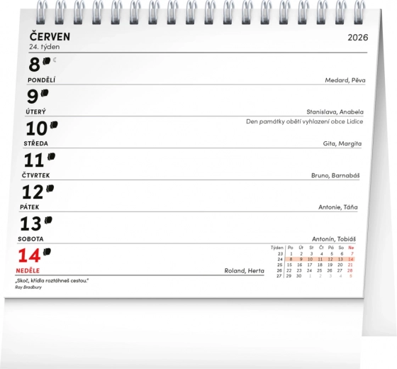 Praktisk bordkalender for året 2026 tilbyder en overskuelig ugentlig kalenderoversigt med rigelig plads til dine noter og inspirerende citater hver uge.