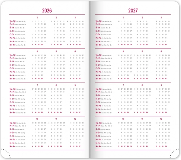 - Ugeoversigt med tjekkisk-slovakisk kalendarium og supplerende engelsk, tysk, ungarsk og russisk