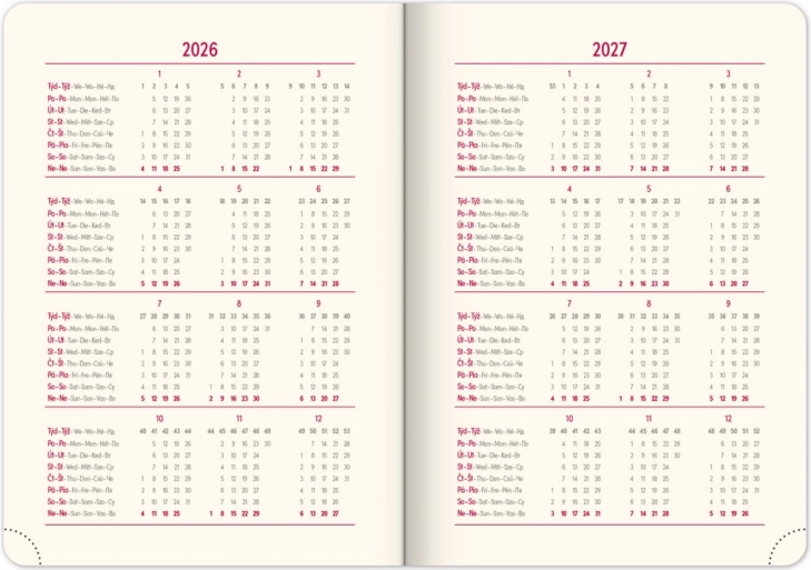 Denne ugekalender er ideel for alle, der søger en måde at forblive organiseret i 2026. Den indeholder: