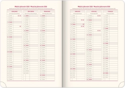 Denne ugentlige kalender kombinerer stil og funktionalitet takket være det blå-guld design med metallisk finish og præget årstal. Den har praktiske elementer som afrundede hjørner, penneholder og elastik, der sikrer bekvem brug. Kalenderen indeholder layout med tjekkisk-slovakisk kalendarium samt andre sprog som engelsk, tysk, ungarsk og russisk.