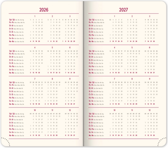 Opdag den nye lommekalender Panama for 2026, som tilbyder en fin struktur egnet til alle typer prægning og et ugentligt layout med flersproget kalendarium.