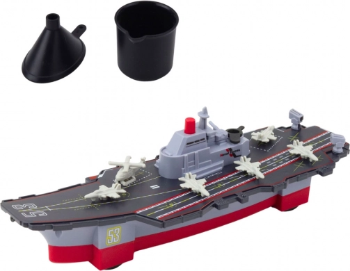 Militærskib med fremdrift og vandeffekter til sjov og sikker leg derhjemme. Inkluderer tragt og spand.