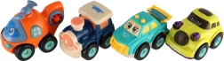 Små køretøjer, stor sjov! Plasttransportmiddel med svinghjul er ideel til børn, der elsker biler, busser eller byggemaskiner. Træk tilbage og slip - køretøjet starter af sig selv.