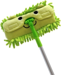 Opdag den grønne moppe med et muntert dyremotiv, som kombinerer funktionalitet med glæden ved at gøre rent. Med et teleskopisk skaft med justerbar længde er den ideel til både børn og voksne. Moppens hoved i absorberende mikrofiber samler effektivt støv og snavs fra forskellige overflader. Takket være den let aftagelige klud med velcro kan den nemt vaskes, hvilket sikrer hygiejnisk og gentagen brug.