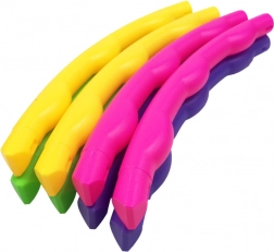 Ringen med en diameter på 50 cm består af 7 lette og nemt sammensættelige dele, hvilket muliggør hurtig montering samt nem transport og opbevaring – perfekt til brug hjemme eller på farten. De farvede segmenter i gul, grøn, lilla og lyserød giver hulahoppen et attraktivt udseende og ekstra motivation til at bevæge sig.