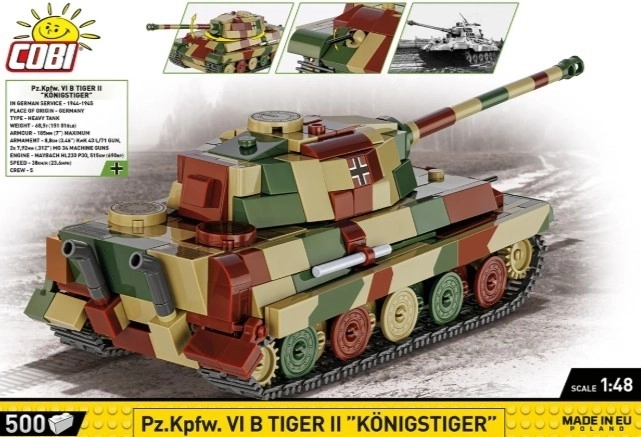 Tiger II-modellen fra COBI er en fantastisk måde at bygge din egen version af en af de mest berømte kampvogne fra Anden Verdenskrig. Dens konstruktion og funktionelle elementer gør den til et ideelt valg for både nye og erfarne entusiaster af byggeklodsemodeller.