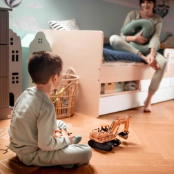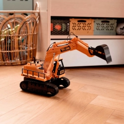 Stor fjernstyret gravemaskine fra WOOPIE er det ideelle legetøj til små fans af byggemaskiner. Den kendetegnes ved høj materialekvalitet, brede gummilarvefødder og stor læringsværdi.